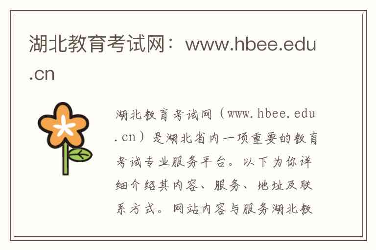 湖北教育考试网(www.hbee.edu.cn)是湖北省内一项重要的教育考试专业服务平台。以下为你详细介绍其内容、服务、地址及联系方式。