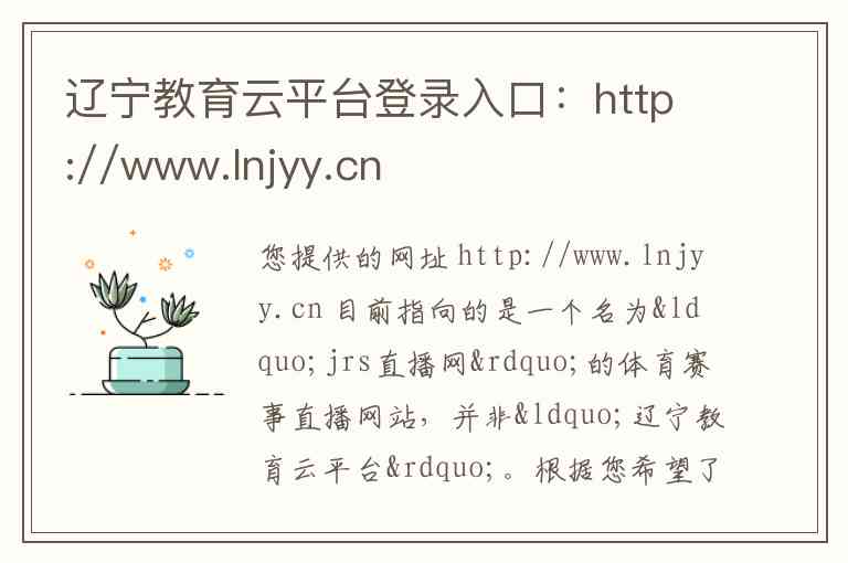 您提供的网址 http://www.lnjyy.cn 目前指向的是一个名为“jrs直播网”的体育赛事直播网站,并非“辽宁教育云平台”。根据您希望了解“辽宁教育云平台”的要求,我为您整理了关于该官方平台的详细信息。