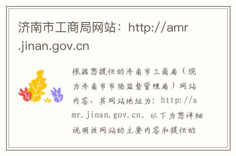 根据您提供的济南市工商局(现为济南市市场监督管理局)网站内容,其网站地址为:http://amr.jinan.gov.cn。以下为您详细说明该网站的主要内容和提供的服务,以及具体的联系方式。
