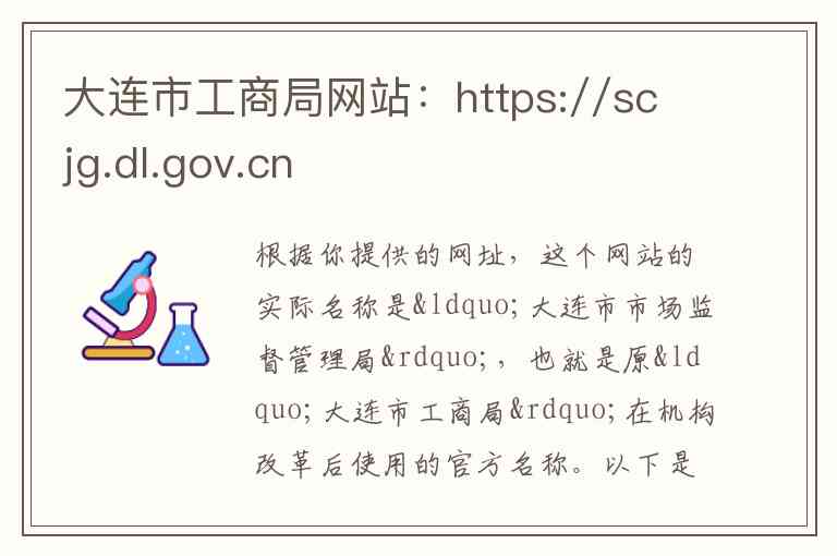 根据你提供的网址,这个网站的实际名称是“大连市市场监督管理局”,也就是原“大连市工商局”在机构改革后使用的官方名称。以下是根据网站页面信息为你整理的具体说明: