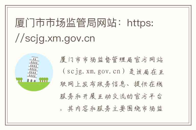 官方网站:https://scjg.xm.gov.cn [citation:URL]