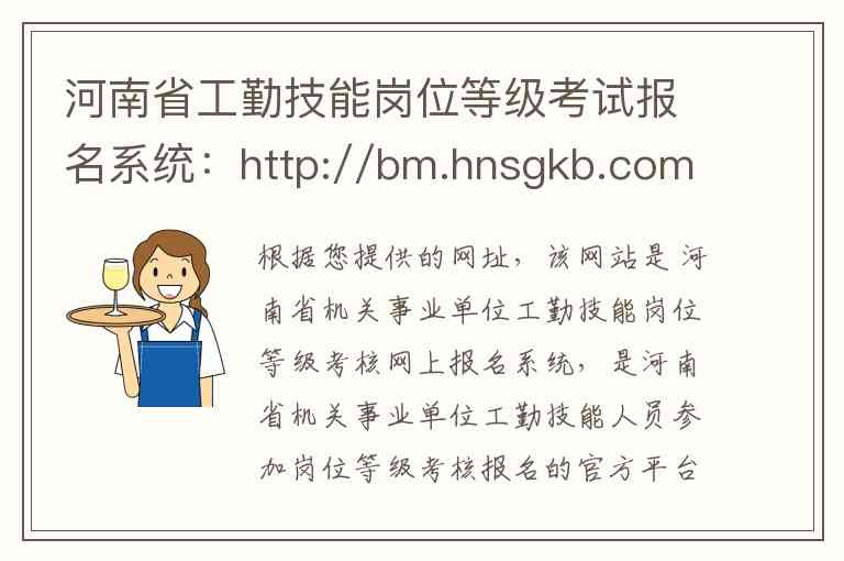 根据您提供的网址,该网站是 河南省机关事业单位工勤技能岗位等级考核网上报名系统,是河南省机关事业单位工勤技能人员参加岗位等级考核报名的官方平台。以下为您详细介绍其内容、服务及官方信息。