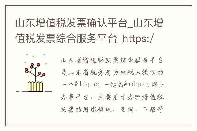 山东省增值税发票综合服务平台是山东省税务局为纳税人提供的一个“一站式”网上办事平台,主要用于办理增值税发票的用途确认、查询、下载等业务-1。以下为您整理了该平台的官方入口、核心服务内容以及官方联系方式。