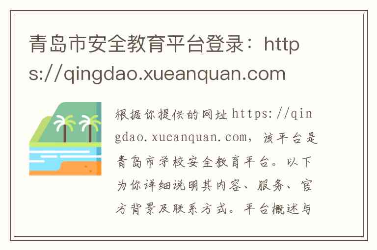 根据你提供的网址 https://qingdao.xueanquan.com,该平台是青岛市学校安全教育平台。以下为你详细说明其内容、服务、官方背景及联系方式。