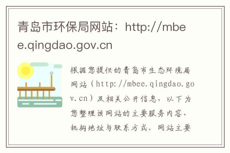 根据您提供的青岛市生态环境局网站(http://mbee.qingdao.gov.cn)及相关公开信息,以下为您整理该网站的主要服务内容、机构地址与联系方式。