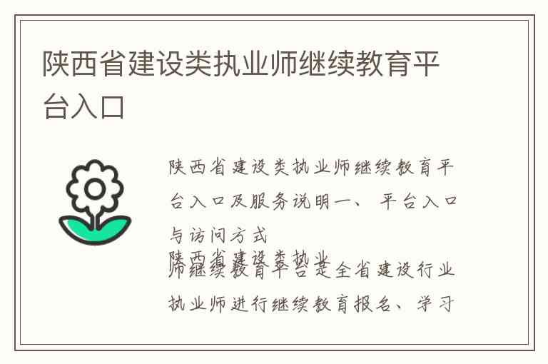 陕西省建设类执业师继续教育平台是全省建设行业执业师进行继续教育报名、学习的官方在线平台。根据最新的官方通知,目前主要有以下两个访问入口:
