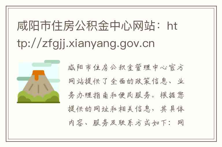 咸阳市住房公积金管理中心官方网站提供了全面的政策信息、业务办理指南和便民服务。根据您提供的网址和相关信息,其具体内容、服务及联系方式如下: