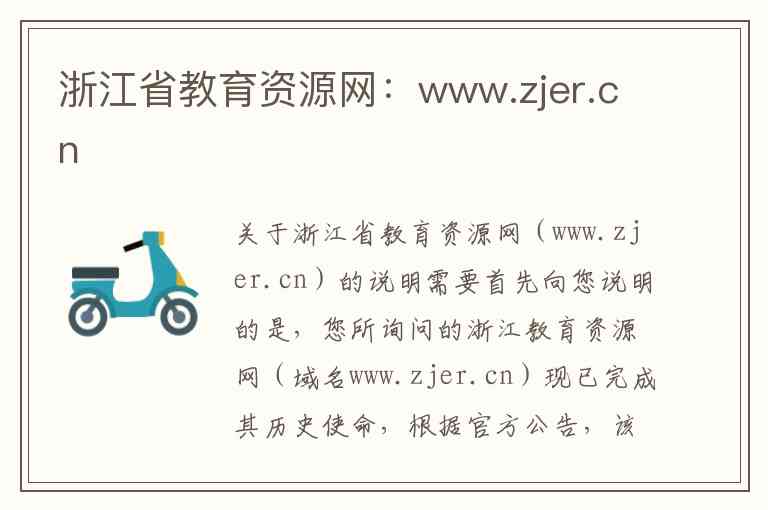 需要首先向您说明的是,您所询问的浙江教育资源网(域名www.zjer.cn)现已完成其历史使命,根据官方公告,该网站自2015年12月10日起已停止服务,其数据整体迁移至新的平台 -3-4。目前,原域名www.zjer.cn已指向新的服务平台,即浙江教育资源公共服务平台,也称为之江汇教育广场 -4-10。因此,以下内容主要为您介绍当前正在运营的之江汇教育广场(即原浙江教育资源网的继承者)的内容与服务。