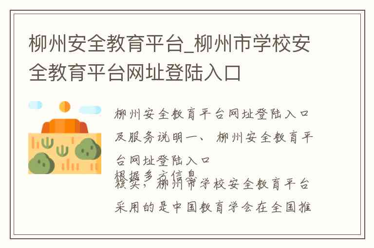 根据多方信息核实,柳州市学校安全教育平台采用的是中国教育学会在全国推广的学校安全教育实验区体系。因此,柳州市的专用登录入口为柳州子域名,具体网址是: