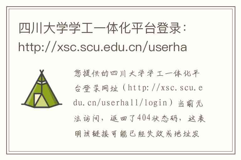您提供的四川大学学工一体化平台登录网址(http://xsc.scu.edu.cn/userhall/login)当前无法访问,返回了404状态码,这表明该链接可能已经失效或地址发生了变化。