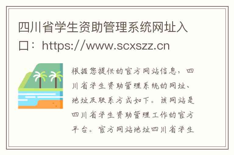 根据您提供的官方网站信息,四川省学生资助管理系统的网址、地址及联系方式如下。该网站是四川省学生资助管理工作的官方平台。
