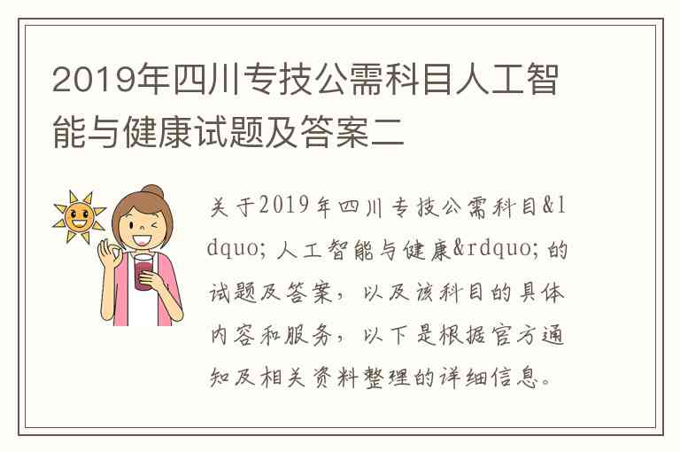 关于2019年四川专技公需科目“人工智能与健康”的试题及答案,以及该科目的具体内容和服务,以下是根据官方通知及相关资料整理的详细信息。