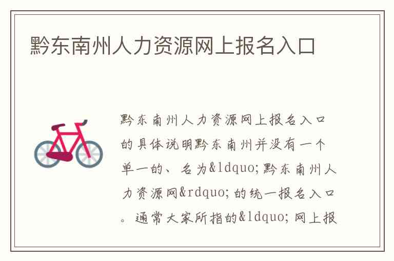 黔东南州并没有一个单一的、名为“黔东南州人力资源网”的统一报名入口。通常大家所指的“网上报名入口”是针对不同招聘考试或人才引进项目而设立的专用通道。根据您想要办理的业务类型,主要分为以下两种情况: