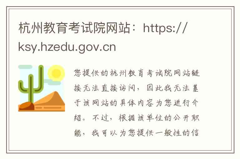 您提供的杭州教育考试院网站链接无法直接访问,因此我无法基于该网站的具体内容为您进行介绍。不过,根据该单位的公开职能,我可以为您提供一般性的信息,并给出获取准确信息的具体路径。