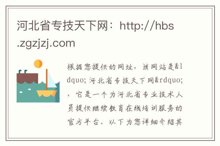 根据您提供的网址,该网站是“河北省专技天下网”,它是一个为河北省专业技术人员提供继续教育在线培训服务的官方平台。以下为您详细介绍其内容、服务及联系方式。