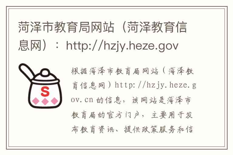 根据菏泽市教育局网站(菏泽教育信息网)http://hzjy.heze.gov.cn 的信息,该网站是菏泽市教育局的官方门户,主要用于发布教育资讯、提供政策服务和信息公开。以下是其具体内容、服务及联系方式的详细说明。