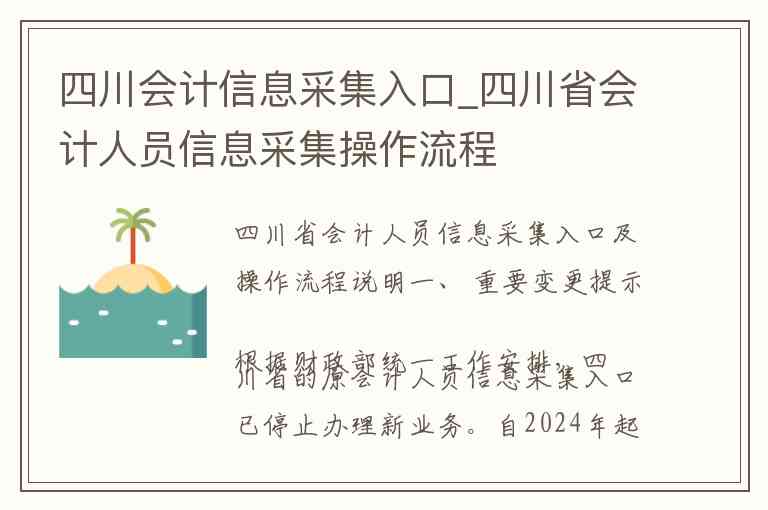 根据财政部统一工作安排,四川省的原会计人员信息采集入口已停止办理新业务。自2024年起,四川省会计人员的信息采集、信息变更、跨省调转等业务统一转移至新平台办理-1-4。