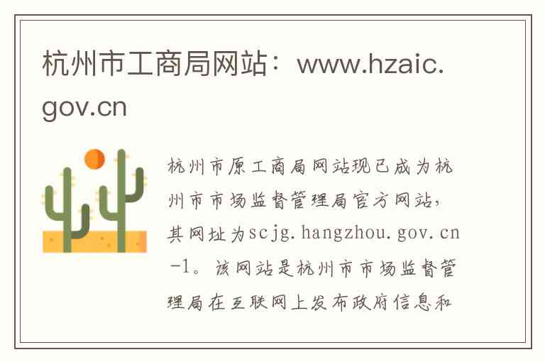 杭州市原工商局网站现已成为杭州市市场监督管理局官方网站,其网址为scjg.hangzhou.gov.cn -1。该网站是杭州市市场监督管理局在互联网上发布政府信息和提供在线服务的综合平台,旨在打造政务公开的窗口和为民服务的平台。