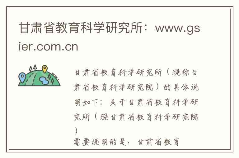 甘肃省教育科学研究所(现称甘肃省教育科学研究院)的具体说明如下: