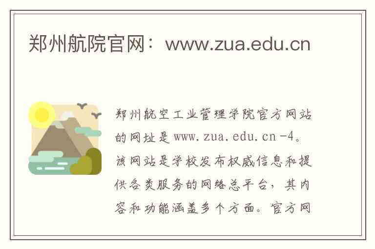 郑州航空工业管理学院官方网站的网址是 www.zua.edu.cn -4。该网站是学校发布权威信息和提供各类服务的网络总平台,其内容和功能涵盖多个方面。