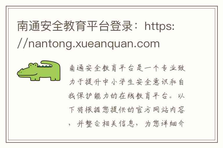 一、平台登录与访问方式您可以通过以下官方渠道访问并使用南通安全教育平台: