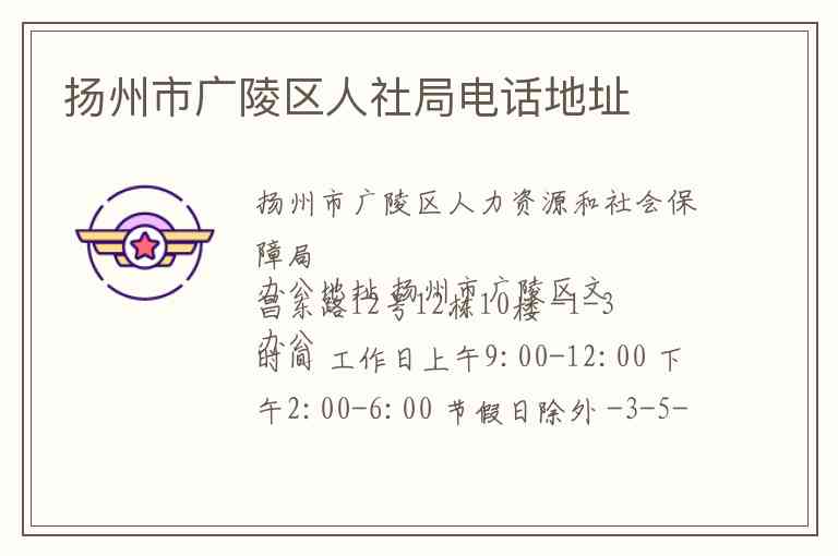 此外 还可拨打扬州人力资源社会保障服务热线0514-12333进行咨询 -1 对于广陵区人社局的业务办理如有监督投诉需求 可拨打0514-87938390 -5-7 或拨打0514-80825097 -10