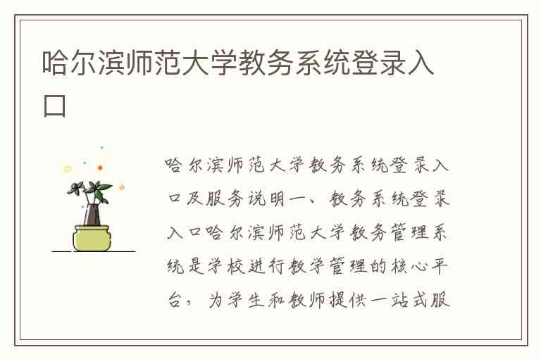 哈尔滨师范大学教务管理系统是学校进行教学管理的核心平台,为学生和教师提供一站式服务。您可以通过以下两种主要方式访问系统入口