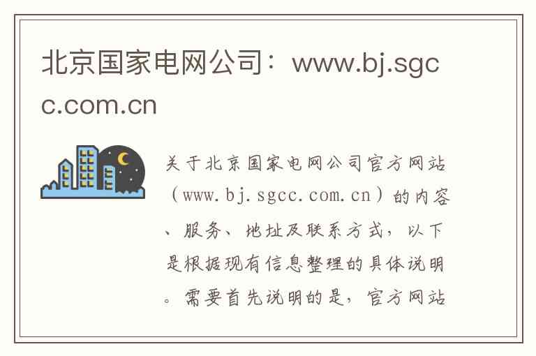 关于北京国家电网公司官方网站(www.bj.sgcc.com.cn)的内容、服务、地址及联系方式,以下是根据现有信息整理的具体说明。