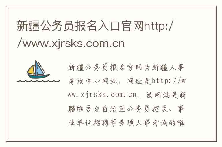 新疆公务员报名官网为新疆人事考试中心网站,网址是http://www.xjrsks.com.cn。该网站是新疆维吾尔自治区公务员招录、事业单位招聘等多项人事考试的唯一官方指定平台。