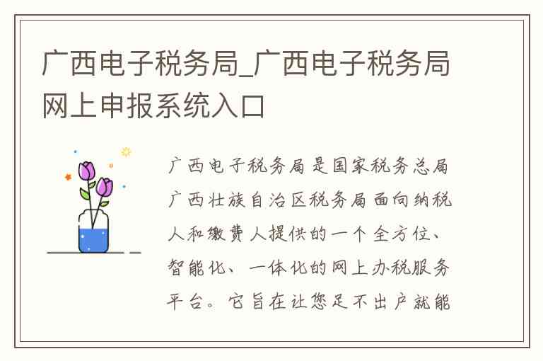 广西电子税务局是国家税务总局广西壮族自治区税务局面向纳税人和缴费人提供的一个全方位、智能化、一体化的网上办税服务平台。它旨在让您足不出户就能轻松办理绝大多数涉税(费)事项,是广西地区进行税务网上申报和办理相关业务的主要渠道。以下为您详细说明其内容、服务、地址及联系方式。