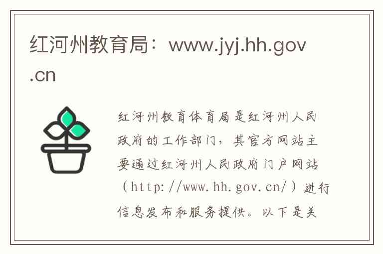 红河州教育体育局是红河州人民政府的工作部门,其官方网站主要通过红河州人民政府门户网站(http://www.hh.gov.cn/)进行信息发布和服务提供。以下是关于该局官方网站内容、服务及联系方式的详细介绍。