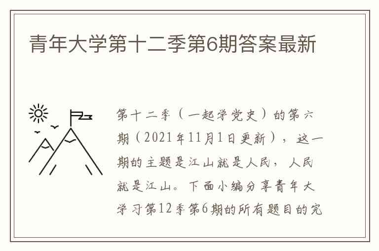 第十二季(一起学党史)的第六期(2021年11月1日更新),这一期的主题是江山就是人民,人民就是江山。下面小编分享青年大学习第12季第6期的所有题目的完整答案。