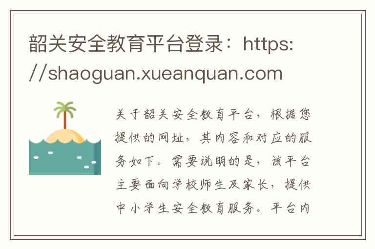 关于韶关安全教育平台,根据您提供的网址,其内容和对应的服务如下。需要说明的是,该平台主要面向学校师生及家长,提供中小学生安全教育服务。