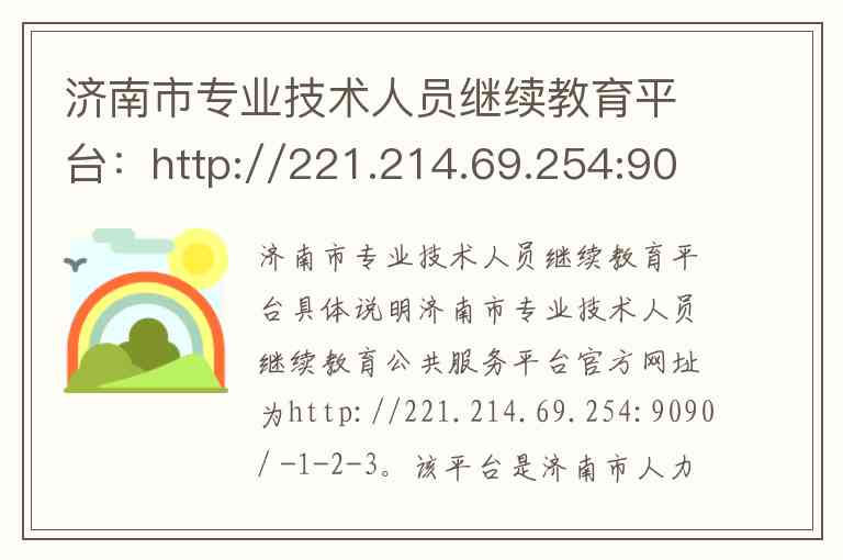 济南市专业技术人员继续教育公共服务平台官方网址为http://221.214.69.254:9090/ -1-2-3。该平台是济南市人力资源和社会保障局开展专业技术人员继续教育培训的官方线上渠道,旨在为全市专业技术人员提供便捷、高效的一站式学习服务 -1-3。