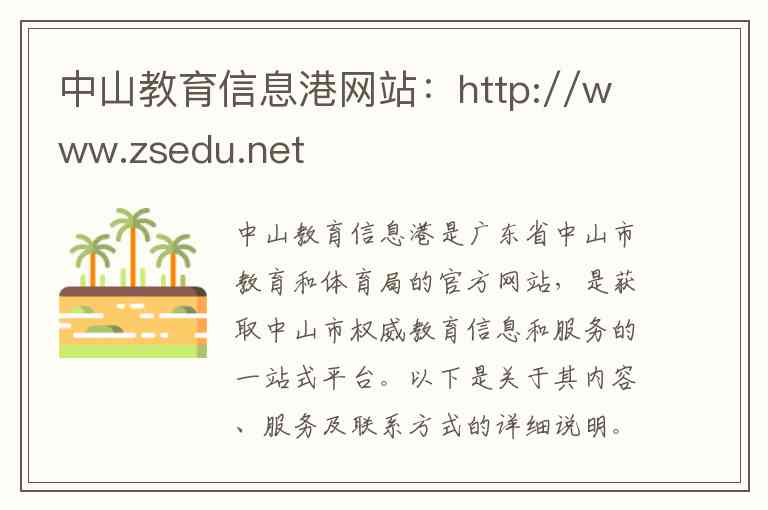 中山教育信息港是广东省中山市教育和体育局的官方网站,是获取中山市权威教育信息和服务的一站式平台。以下是关于其内容、服务及联系方式的详细说明。