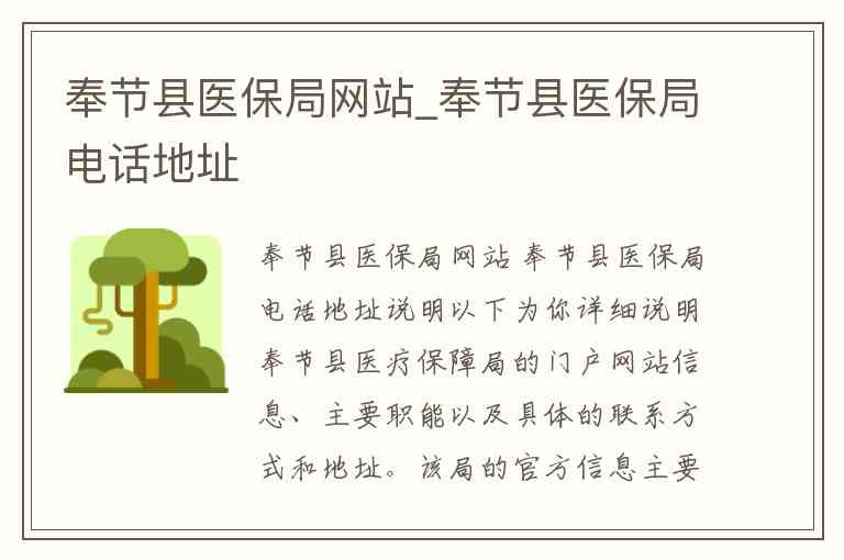 以下为你详细说明奉节县医疗保障局的门户网站信息、主要职能以及具体的联系方式和地址。该局的官方信息主要通过奉节县人民政府网站进行发布。