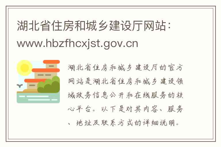 湖北省住房和城乡建设厅的官方网站是湖北省住房和城乡建设领域政务信息公开和在线服务的核心平台。以下是对其内容、服务、地址及联系方式的详细说明。