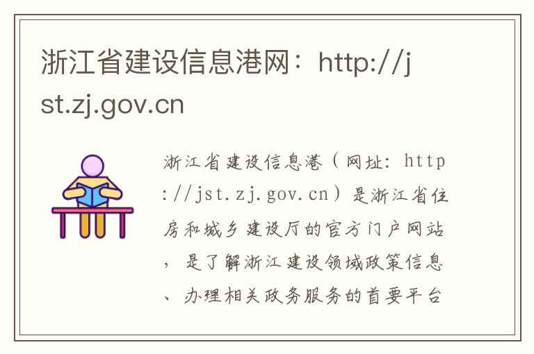 浙江省建设信息港(网址:http://jst.zj.gov.cn)是浙江省住房和城乡建设厅的官方门户网站,是了解浙江建设领域政策信息、办理相关政务服务的首要平台-1。
