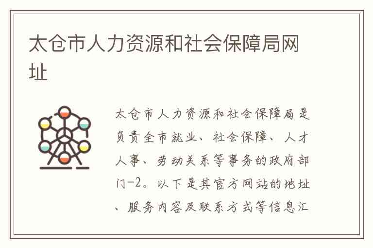 太仓市人力资源和社会保障局是负责全市就业、社会保障、人才人事、劳动关系等事务的政府部门-2。以下是其官方网站的地址、服务内容及联系方式等信息汇总。