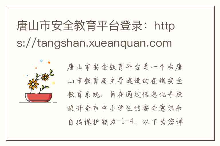 唐山市安全教育平台是一个由唐山市教育局主导建设的在线安全教育系统,旨在通过信息化手段提升全市中小学生的安全意识和自我保护能力-1-4。以下为您详细介绍其登录方式、核心服务内容以及相关联系方式。