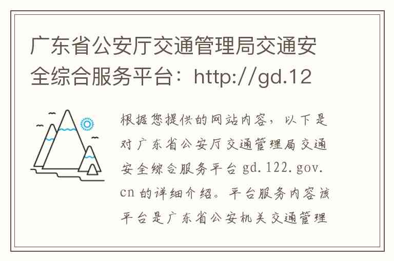 根据您提供的网站内容,以下是对广东省公安厅交通管理局交通安全综合服务平台 gd.122.gov.cn 的详细介绍。