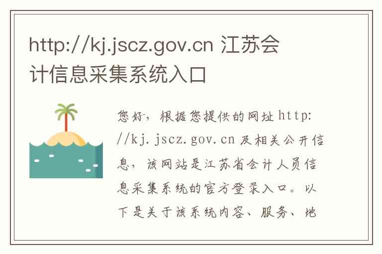您好,根据您提供的网址 http://kj.jscz.gov.cn 及相关公开信息,该网站是江苏省会计人员信息采集系统的官方登录入口。以下是关于该系统内容、服务、地址及联系方式的详细说明。