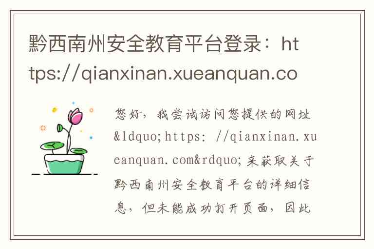 您好,我尝试访问您提供的网址“https://qianxinan.xueanquan.com”来获取关于黔西南州安全教育平台的详细信息,但未能成功打开页面,因此无法直接从中提取其具体内容、服务、地址和联系方式。