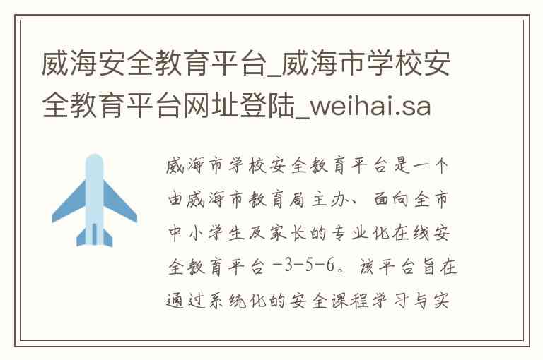 威海市学校安全教育平台是一个由威海市教育局主办、面向全市中小学生及家长的专业化在线安全教育平台 -3-5-6。该平台旨在通过系统化的安全课程学习与实践活动,提升学生的安全防范意识和自我保护能力,构建平安和谐的校园环境 -6-10。