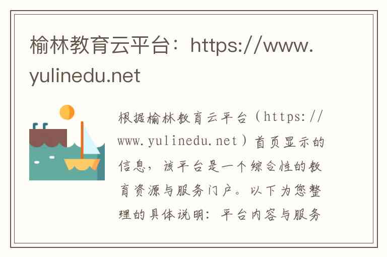根据榆林教育云平台(https://www.yulinedu.net)首页显示的信息,该平台是一个综合性的教育资源与服务门户。以下为您整理的具体说明: