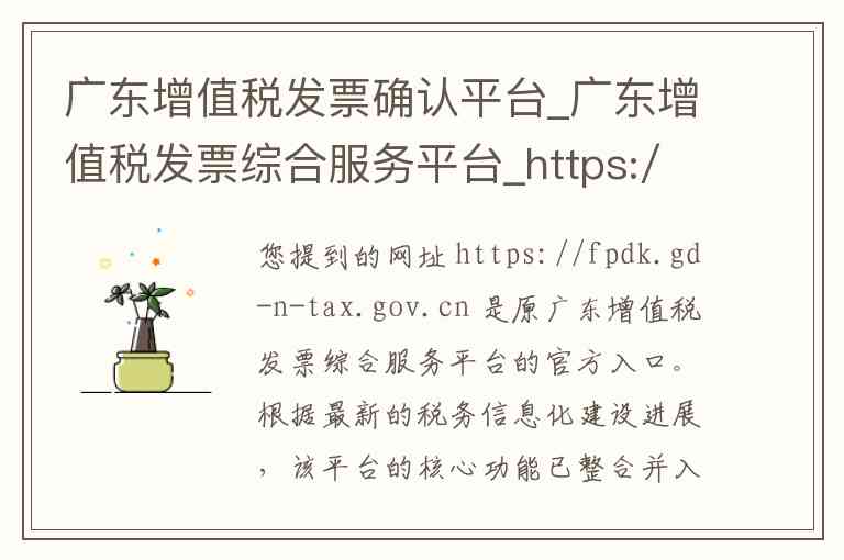 您提到的网址 https://fpdk.gd-n-tax.gov.cn 是原广东增值税发票综合服务平台的官方入口。根据最新的税务信息化建设进展,该平台的核心功能已整合并入“全国统一规范的电子税务局”-2。以下是基于官方权威信息整理的有关该平台(及当前办理渠道)的详细说明、服务内容和联系方式。