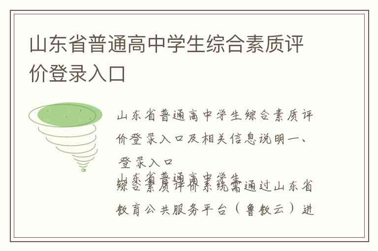 山东省普通高中学生综合素质评价登录入口及相关信息说明
