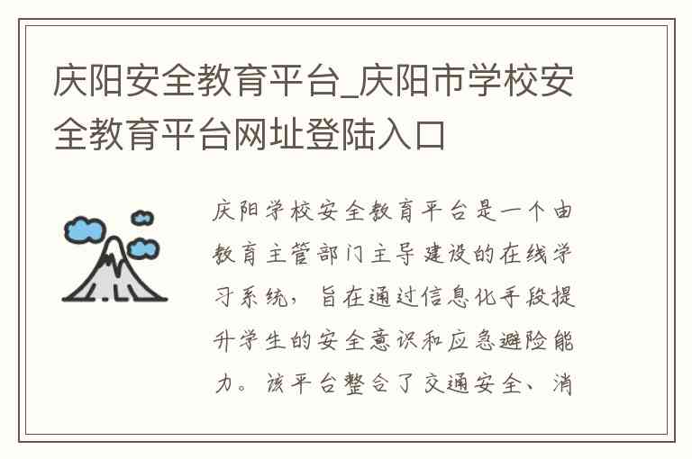以下是关于庆阳市学校安全教育平台的详细说明,包括登陆入口、服务内容及联系方式。