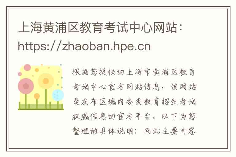 根据您提供的上海市黄浦区教育考试中心官方网站信息,该网站是发布区域内各类教育招生考试权威信息的官方平台。以下为您整理的具体说明: