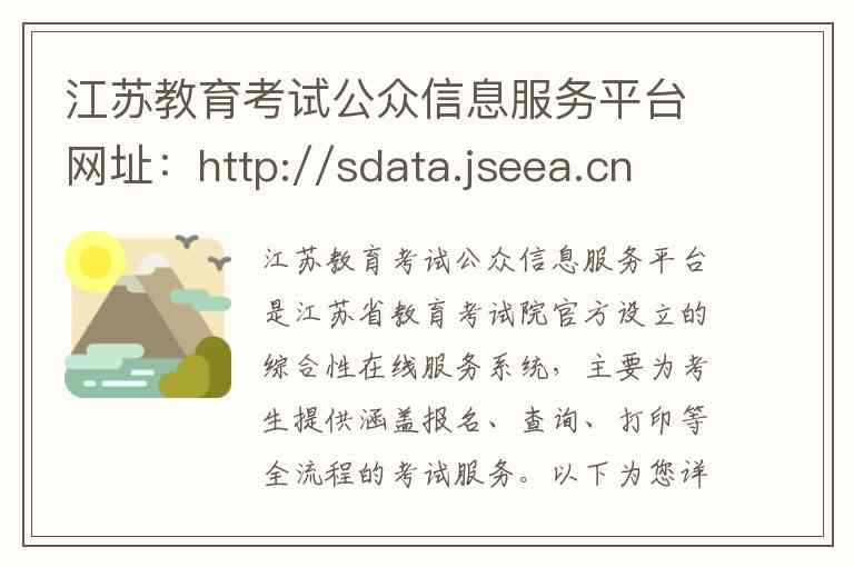 江苏教育考试公众信息服务平台是江苏省教育考试院官方设立的综合性在线服务系统,主要为考生提供涵盖报名、查询、打印等全流程的考试服务。以下为您详细介绍其网址、核心功能、访问方式及官方联系方式。